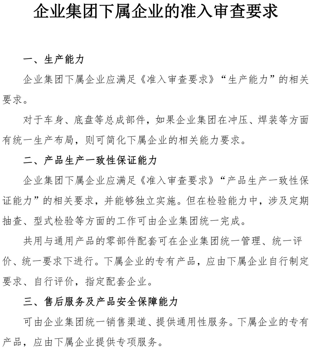 On July 30, the Ministry of Industry and Information Technology issued a decision on amending the \"Regulations on the Administration of New Energy Vehicle Manufacturers and Product Access\", which will be implemented on September 1, 2020. There are three main changes:The first is to delete the \"design and development capabilities\" requirements for applying for the entry of new energy automobile manufacturers. In order to better stimulate the vitality of enterprises and lower the entry barriers for enterprises, the relevant content related to \"design and development capabilities\" in Article 5 and the \"New Energy Automobile Manufacturers Access Review Requirements\" and other annexes have been deleted.The second is to adjust the time for new energy vehicle manufacturers to stop production from 12 months to 24 months. Article 34, paragraph 3 of the \"Measures for the Administration of Road Motor Vehicle Manufacturing Enterprises and Product Access\" (Order No. 50 of the Ministry of Industry and Information Technology) stipulates that if a manufacturing enterprise cannot maintain normal production and operation for two consecutive years, special publicity is required. The \"Access Regulations\" on the special announcement requirements of new energy vehicle manufacturers should be consistent with them.The third is to delete the transitional provision for new energy automobile manufacturers to apply for access. Temporary provisions for the transition period are mainly applicable to new energy vehicle manufacturers and products that have obtained access before the implementation of the \"Access Regulations\", and they are required to comply with relevant transitional provisions from July 1, 2017 to June 30, 2019. The current transition period has ended.Decision of the Ministry of Industry and Information Technology on Amending the \"Regulations on the Administration of New Energy Automobile Manufacturers and Product Access\"Order No. 54 of the Ministry of Industry and Information Technology of the People's Republic of ChinaThe \"Decision of the Ministry of Industry and Information Technology on Amending the Regulations on the Administration of New Energy Automobile Manufacturers and Product Access\" has been reviewed and approved at the 16th ministerial meeting of the Ministry of Industry and Information Technology on July 14, 2020. It is hereby announced. It will be implemented on September 1, 2020.Minister of Industry and Information Technology Miao WeiJuly 24, 2020Decision of the Ministry of Industry and Information Technology on Amending the \"Regulations on the Administration of New Energy Automobile Manufacturers and Product Access\"In order to better meet the development needs of my country's new energy automobile industry, the Ministry of Industry and Information Technology has decided to make the following amendments to the \"Regulations on the Administration of New Energy Automobile Manufacturers and Product Access\" (Ministry of Industry and Information Technology Order No. 39):1. Delete \"Design and Development Ability\" in Item (3) of Article 5.2. The second paragraph of Article 22 is amended as \"The competent industry and informatization departments of provinces, autonomous regions, and municipalities directly under the Central Government shall supervise and inspect the production status of new energy vehicle manufacturers and the operation of the monitoring platform in their respective administrative regions. New discovery Energy vehicle manufacturers that have major changes in the requirements listed in the \"Access Review Requirements\", major safety hazards in production management, products that do not meet safety technical standards, and illegal activities, should promptly report to the Ministry of Industry and Information Technology.\"3. Modify \"12 months\" in the first paragraph of Article 23 to \"24 months\".4. Amend Article 28 to \"If a new energy vehicle manufacturer produces and sells new energy vehicle models that are not listed in the \"Announcement\" of the Ministry of Industry and Information Technology without authorization, the Ministry of Industry and Information Technology shall The relevant provisions of the Road Traffic Safety Law will be punished.\"5. Delete Article 29, Article 30, and Article 31.Sixth, the \"New Energy Vehicle Manufacturers and Product Access Management Regulations\" appended to the \"New Energy Vehicle Manufacturers Access Review Requirements\", \"Enterprise Group Subsidiary Enterprises Access Review Requirements\" and \"New Energy Vehicle Manufacturers Access Application\" \"Book\", \"Major Technical Parameters of New Energy Vehicle Products\" and \"New Energy Vehicle Annual Report\" (see appendix).This decision will come into effect on September 1, 2020. The \"Regulations on the Administration of New Energy Vehicle Manufacturers and Product Access\" will be revised and re-announced in accordance with this decision.annex:Attachment documents to the \"Regulations on New Energy Vehicle Manufacturers and Product Access Management\" decided to amend
